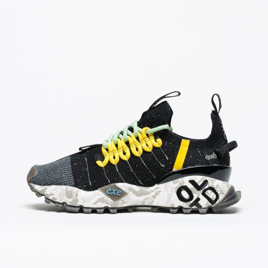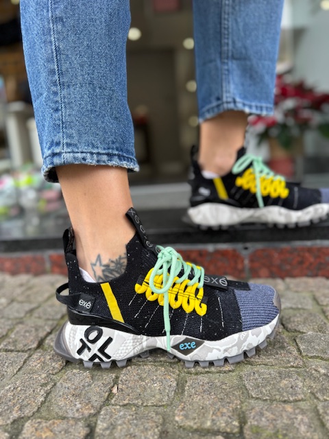 Sapatilha Exé em pele e textil , com pormenores giros e sola utra-leve.